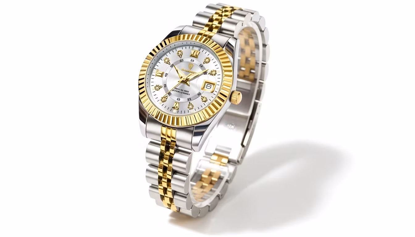 Denna eleganta guld klocka dam kombinerar moderna detaljer med klassisk tidlös stil. Den runda urtavlan med kristallklara markeringar skapar en stilren balans mellan funktion och estetik, medan den varma guldfärgen ger ett exklusivt uttryck som passar både vardag och fest. Metallarmbandet sitter bekvämt runt handleden och gör klockan lika fin att bära som den är vacker att se på.